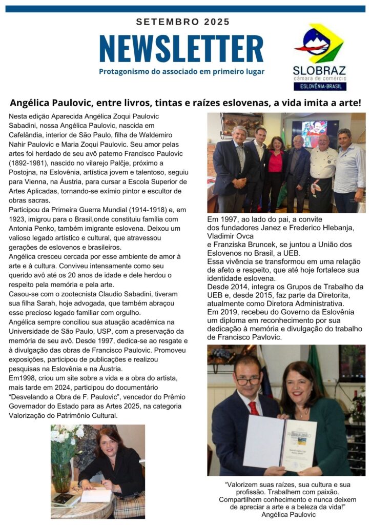 13 abr Newsletter – Setembro/2025 Entrevista com Angélica Paulovic Sabadini, brasileira eslovena, cheia de energia, exemplo para a nova geração, conta um pouquinho de sua história!